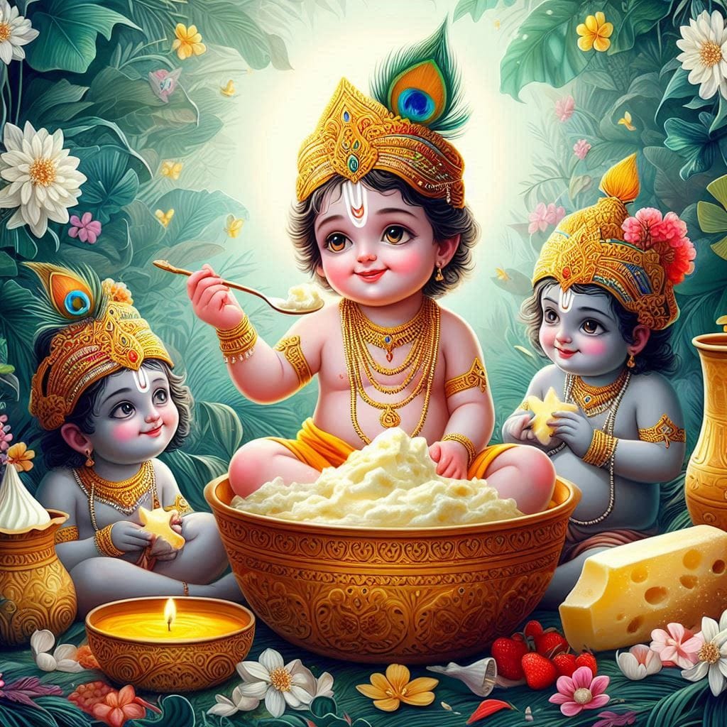 - भगवान श्री कृष्ण को माखन मिश्री अत्यंत प्रिय थी । अपने बाल अवतार में कान्हा ने माखन के लिए बहुत गोपियों की मटकी फोड़ी थी, घरो से माखन चुराया था इसलिए उन्हें माखन चोर भी कहा जाता है अत: उन्हें माखन मिश्री का भोग अवश्य ही लगाएं ।