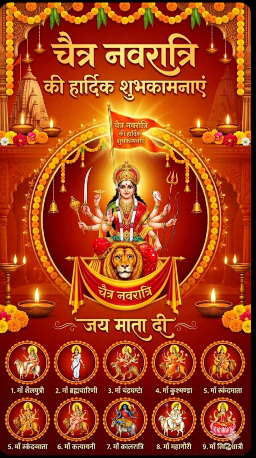 नवरात्रि navratri में माँ नौ शक्तियों की पूजा अलग-अलग दिन में की जाती है।